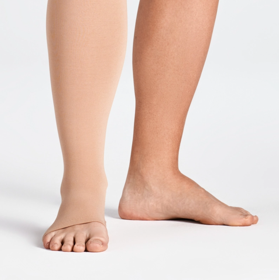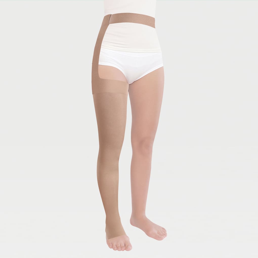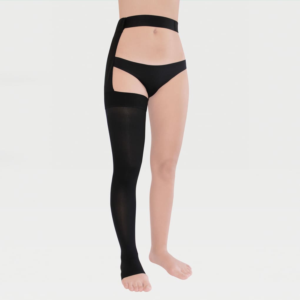 ОписаниеМедицинский компрессионный чулок на одну ногу на поясе, с открытым мысом для мужчин и женщин (левый или правый)