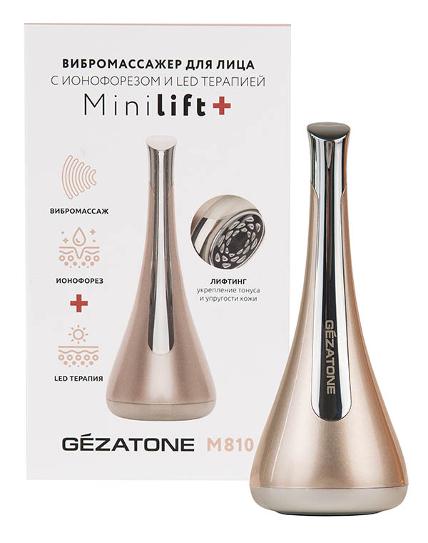 Вибромассажер для лица и кожи вокруг глаз с ионофорезом и LED терапией Minilift+ m810, Gezatone